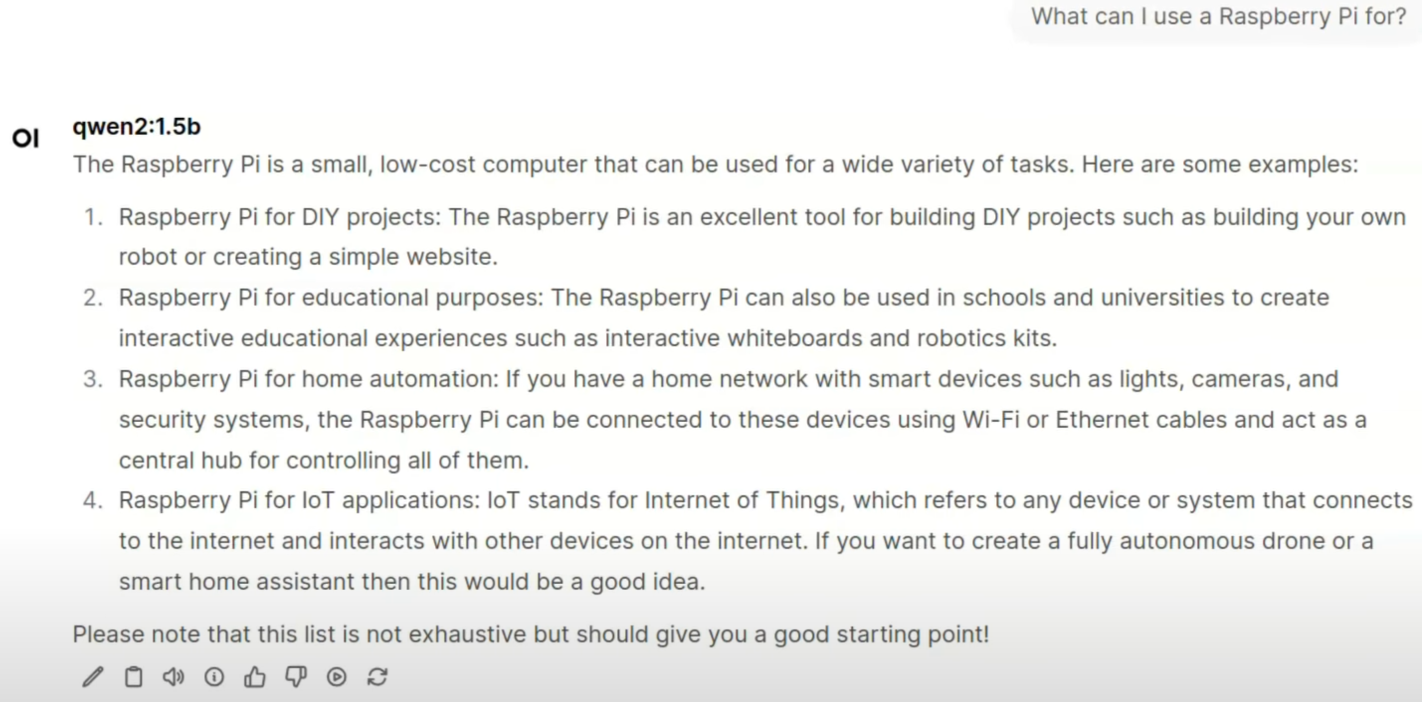 例如,使用 Qwen2 模型,设备即可完成日常问答、代码辅助等基础生成式 AI 任务,展示了树莓派在边缘 GenAI 领域的全新可能。