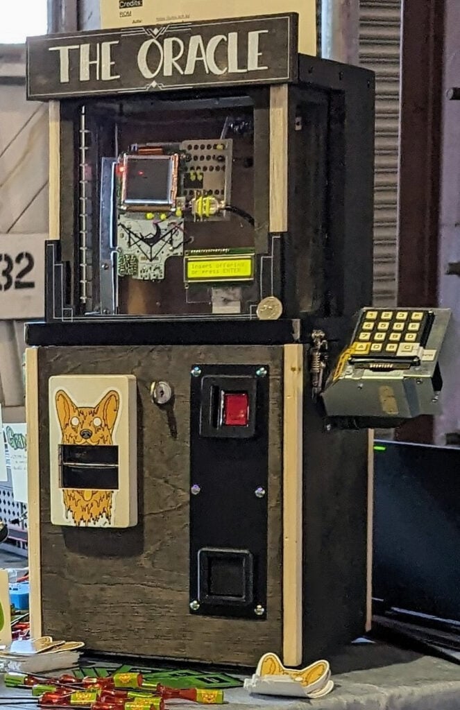 The Oracle互动占卜机:这是一个迷你版的“左尔特”式算命街机,由一部精简的任天堂Game Boy与树莓派Zero W结合而成。后者提供了连接键盘、投币机构、LCD屏和继电器模块所需的所有I/O功能。它还能无线连接至ChatGPT API,生成具有美国作家H.P.洛夫克拉夫特或儿童文学作家苏斯博士风格的“星座运势”,并通过热敏打印机将结果打印在纸条上。